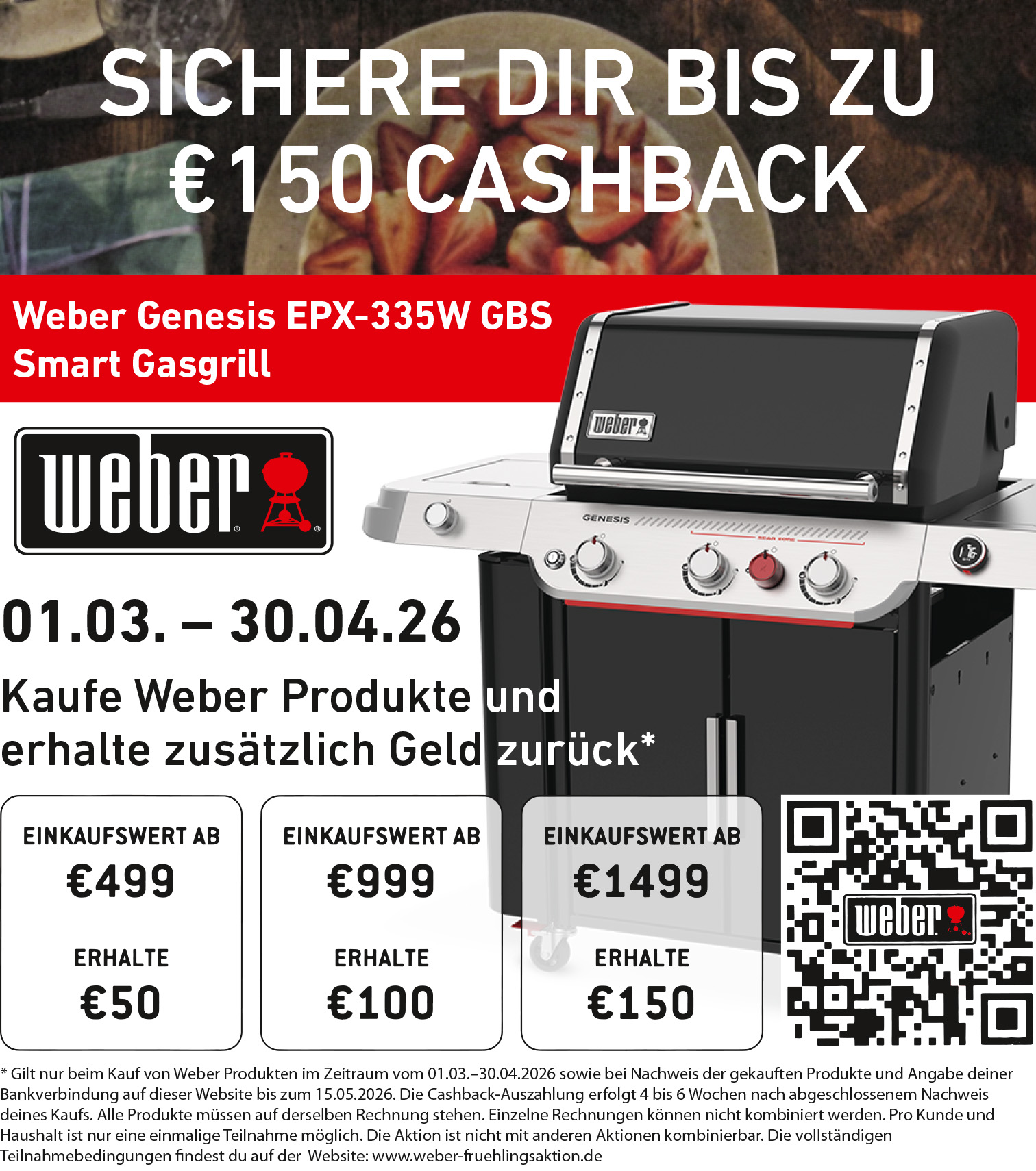 Kaufe Weber-Produkte und erhalte zusätzlich Geld zurück! Gültig von 01.03. – 30.04.2026