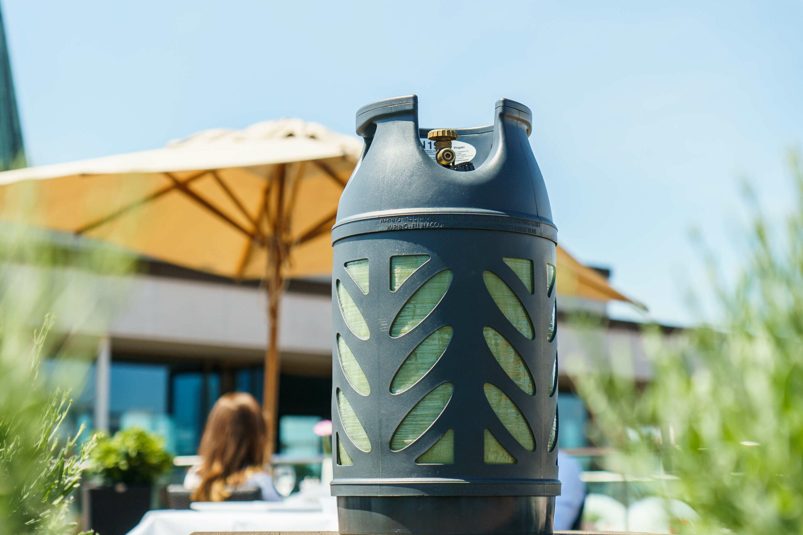 Die innovative Composite-Gasflasche besteht aus modernem Kunststoff und Verbundwerkstoff. Sie ist eine zeitgemäße, rostfreie Alternative zu herkömmlichen Stahl-Gasflaschen und überzeugt mit einem ansprechenden Design sowie einer langen Lebensdauer. Dank ihres geringen Leergewichts von nur 5,3 kg (Tara) ist sie nicht nur besonders leicht, sondern auch äußerst handlich. Ein weiteres Highlight ist der spezielle Flaschenkorpus: Durch die Aussparungen im Mantel wird die transluzente Glasfaser sichtbar, sodass der Füllstand auf einen Blick erkennbar ist.